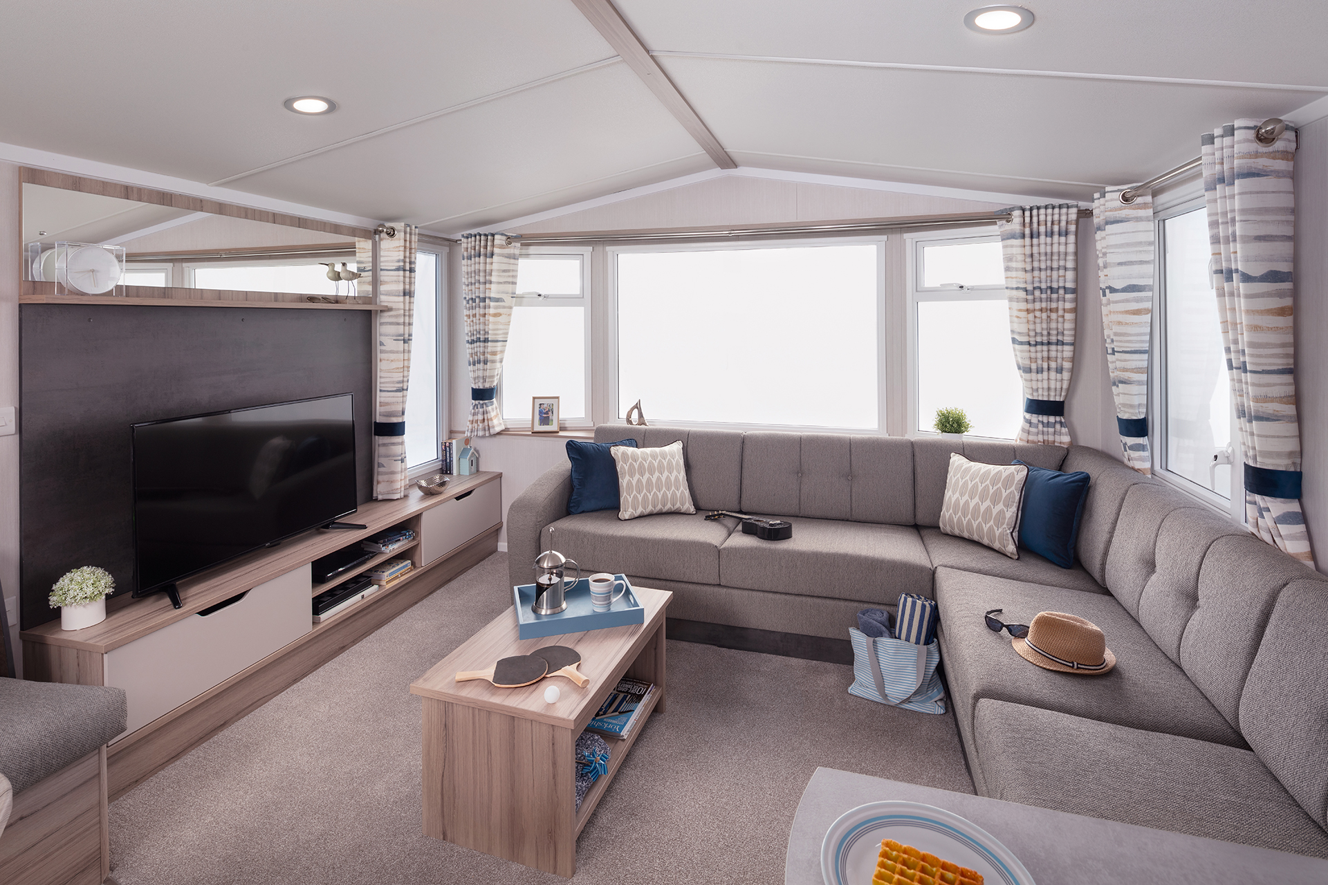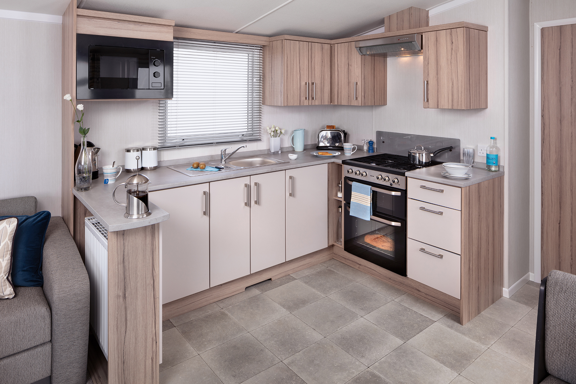 The Willerby Martin boasts a unique central lounge layout with a bright colour scheme. The kitchen has a practical U-shaped kitchen and dining area
